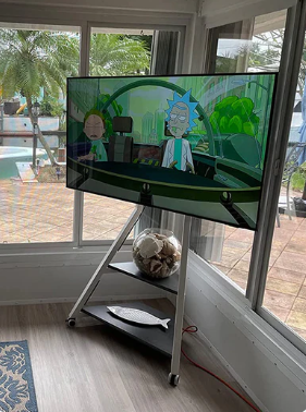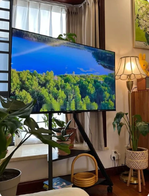 包装里有脚垫和轮子(轮子是赠品),可轻松适配不同空间与观看需求,为您带来全方位的灵活观看感受 。